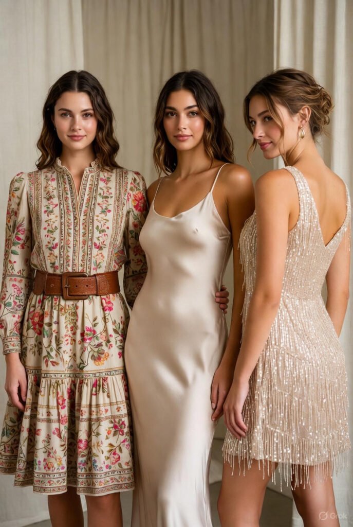 - Date Night → Satin slip western dress + heels + minimal jewelry