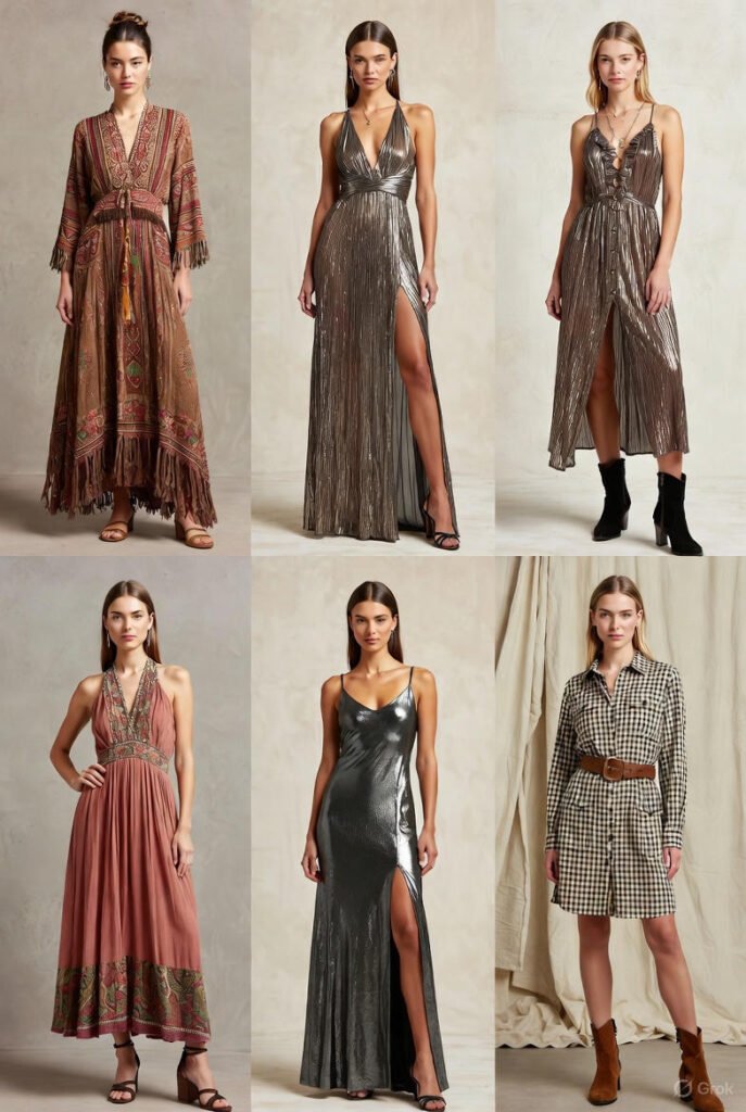 - Maxi Western Dresses – Effortless elegance. Boho maxi western dresses, satin slip maxi dresses, one-shoulder maxi dresses, tiered maxi dresses, wrap maxi western dresses