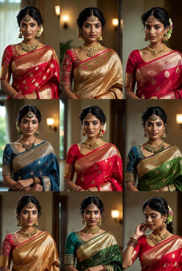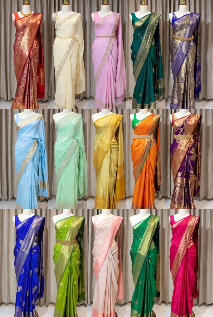 - Types of sarees: Banarasi, Kanjeevaram, Chanderi, organza, linen