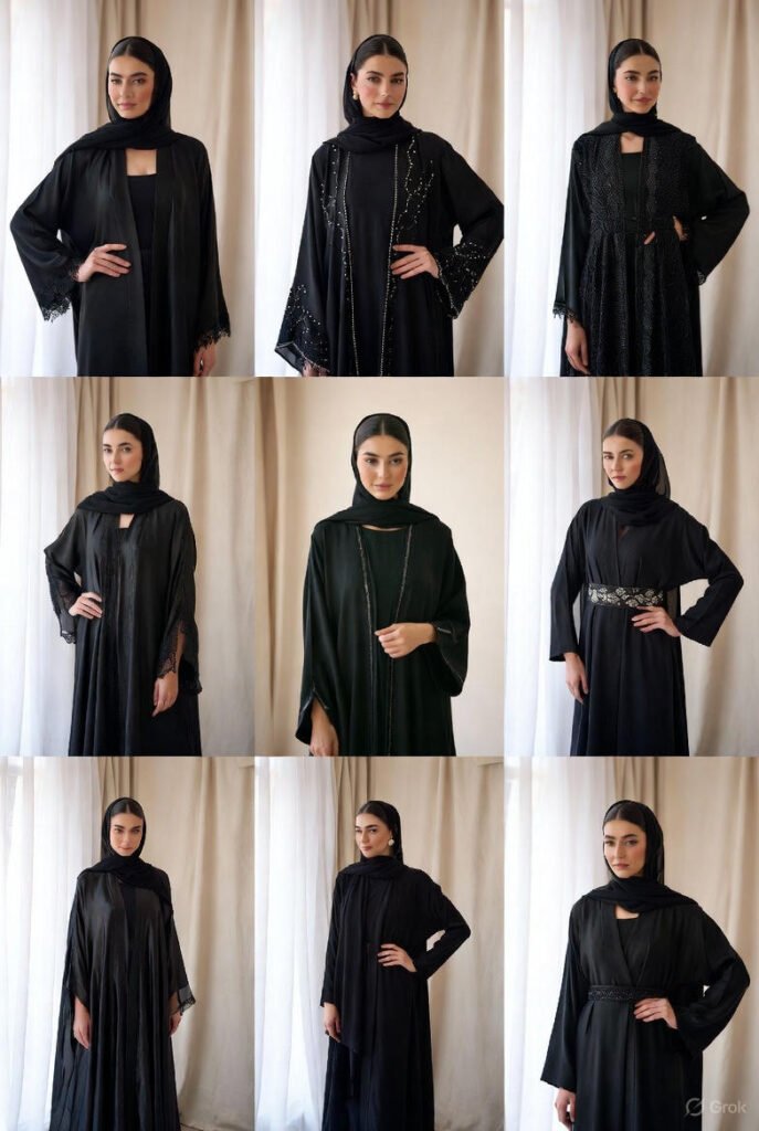 - Top abaya brands from UAE, Saudi Arabia, and Pakistan