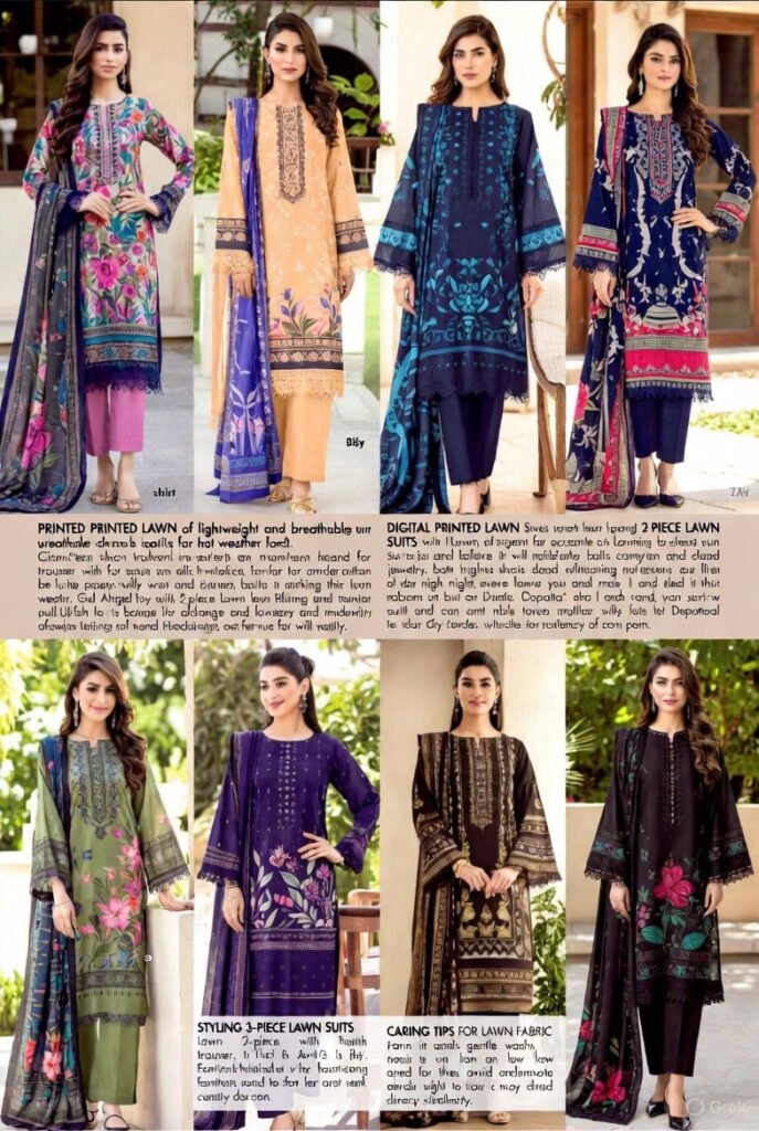 - Top Pakistani lawn brands (and their signature styles) References: Gul Ahmed textile archives, Bareeze fabric guide